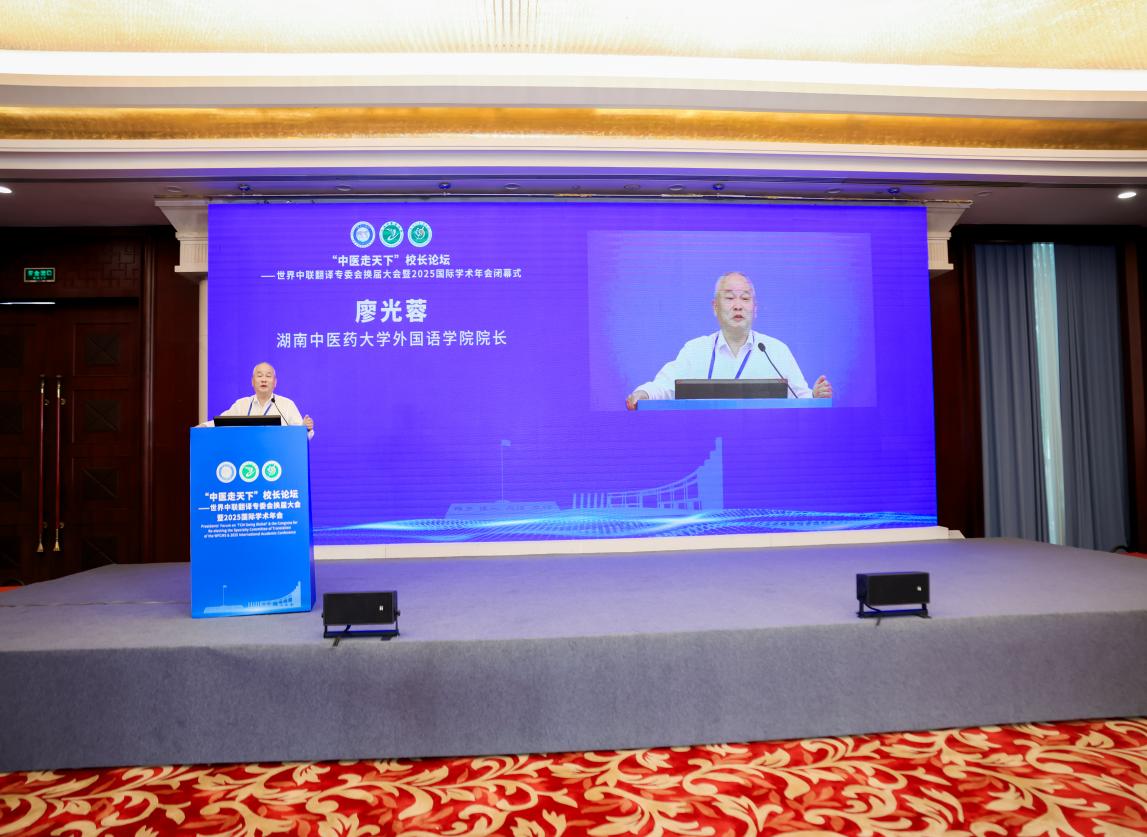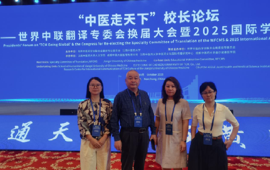 10月11日,“中医走天下” 校长论坛——世界中医药学会联合会(以下简称 “世中联”)翻译专委会换届大会暨2025年国际学术年会在江西南昌隆重召开。来自国内外40余所高校、科研院所的中医药文化翻译与国际传播领域专家学者齐聚一堂,共话“中医走天下”的实践路径与未来方向。在这场行业盛会上,湖南中医药大学外国语学院暨湖南省中医药文化翻译与国际传播研究中心携学术研究成果与实践经验参会,积极融入行业交流,展现了在该领域的务实探索与积极作为。