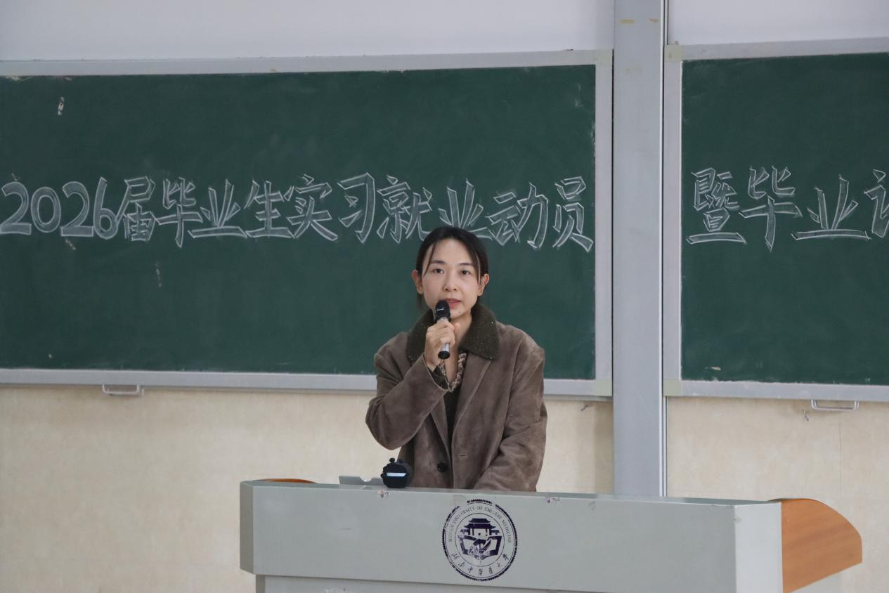 刘鑫围绕实习纪律和实习安全两方面展开讲话,她请同学们遵守实习单位规章制度、注重个人职业操守,并从人身、财产、心理三方面强化安全意识,在实践历练中积累经验、增长才干。