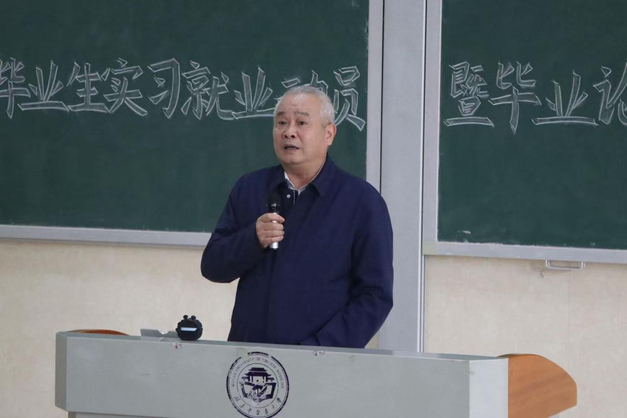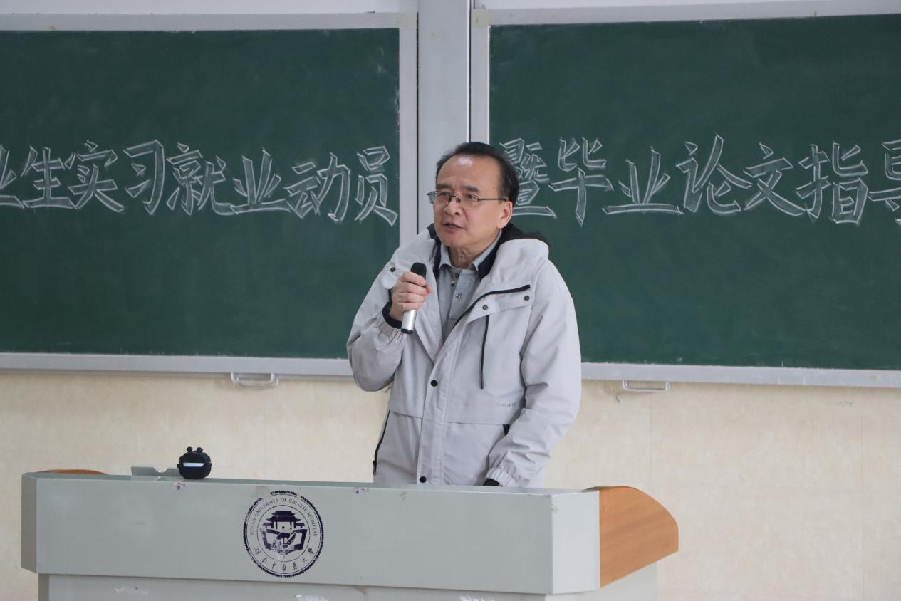 刘江通过“按时、合规、质量、沟通”四个关键词对毕业论文工作提出要求。他强调,毕业论文是检测大学学习成果的关键,希望各位同学严守学术道德底线,杜绝翻译、拼凑等学术不端行为。呼吁大家在实习期间多与指导老师沟通,时刻怀揣着感恩之心。