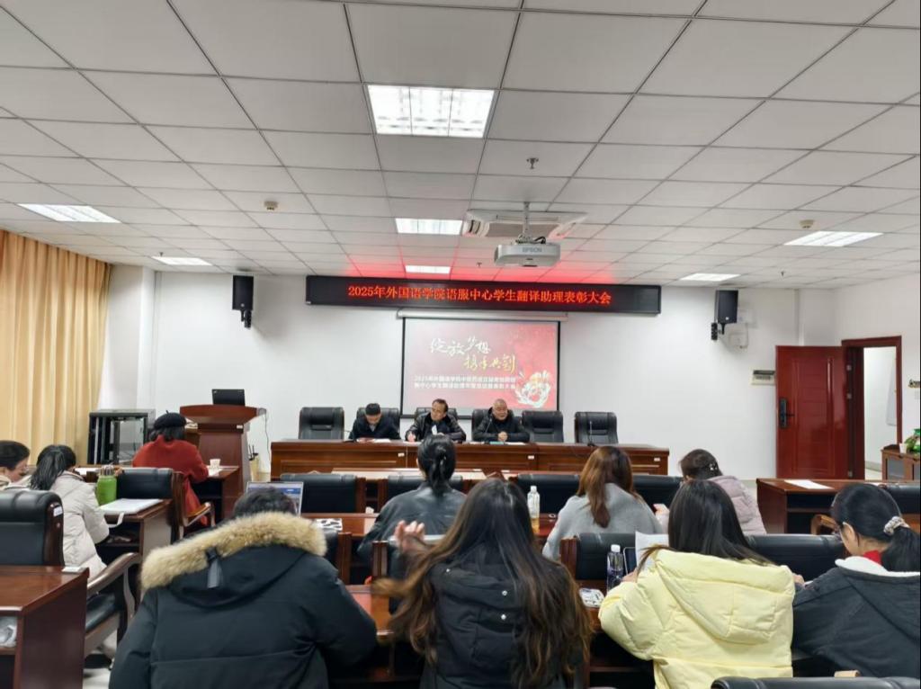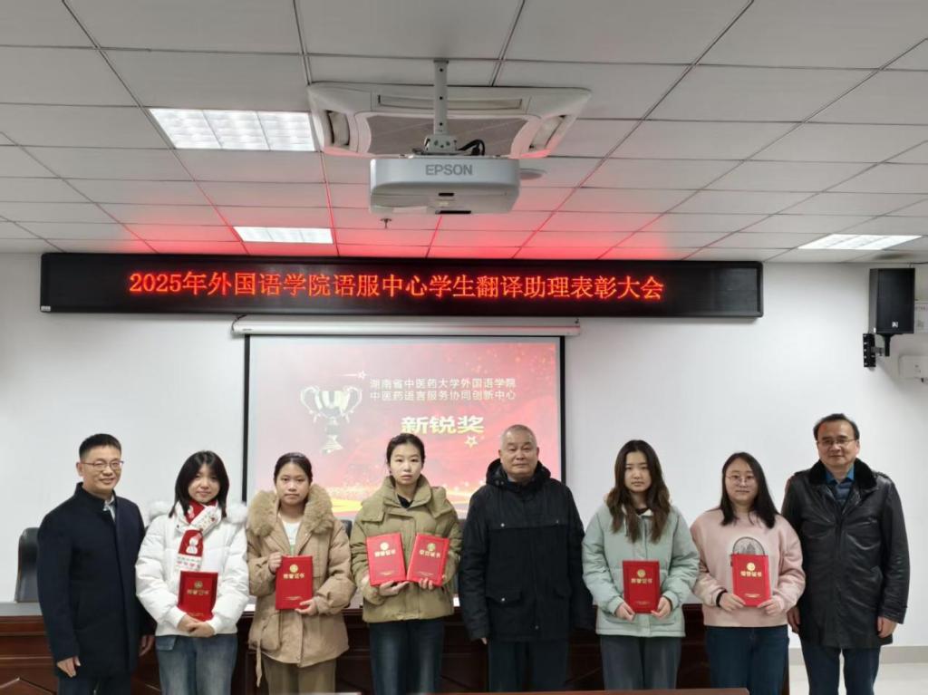 为总结2025年度中医药语言服务协同创新中心学生翻译助理工作成果,表彰先进典型,激发学生工作热情,近日,外国语学院中医药语言服务协同创新中心学生翻译助理工作总结暨表彰大会隆重举行。会议由院长廖光蓉主持,他指出语服中心是学院外语学科服务于中医药事业的桥头堡、项目制人才培养模式改革试验区和创新创业的孵化地,他强调要让更多的学生,尤其是中医药学专业的学生受惠于项目制培养模式。