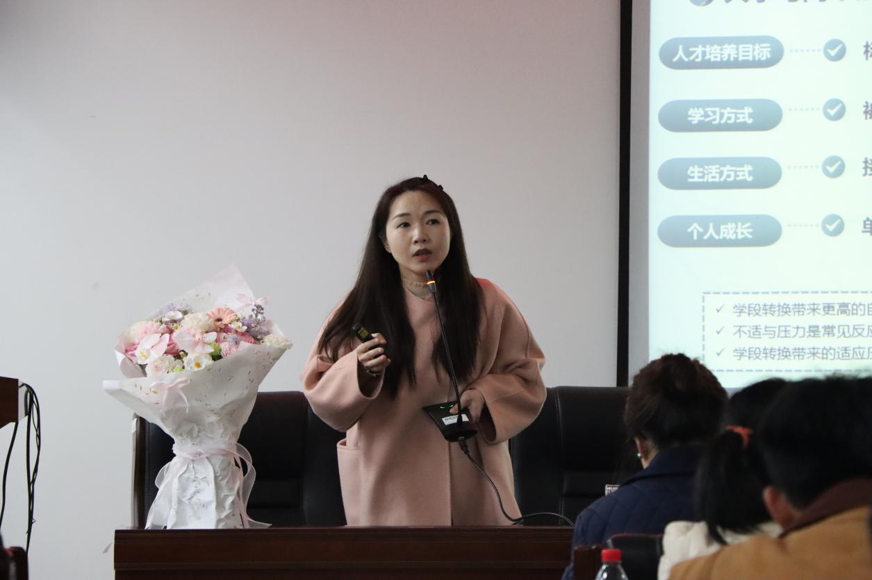 培训会上,杨爽以大学生心理健康现状为切入点,对比大学与高中在人才培养目标、学习方式、生活方式、个人成长四个方面的核心差异,剖析学生在学段转换过程中面临的的适应压力。她从生理、心理两个层面,结合恋爱交往、学业压力等真实案例,梳理大学生主要压力来源。针对心理沟通困难的情况,杨爽详细讲解共情倾听与回应技巧,提出“事实-行为-感受-认知-计划”倾听框架。同时,她着重强调心理危机三大警示情况、四大识别维度,明确“早发现、早报告、早干预”的危机处理原则,为师生有效应对心理问题指引方向,守护心灵健康。提问环节,杨爽一一回应了学生们的心理困惑,并给予针对性解决建议。