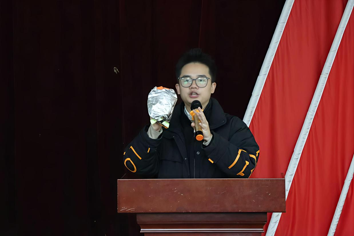 湘安消防代表罗源波通过介绍典型火灾案例,向大家具体描述了火灾的破坏性和突发性,他强调,同学们需提升消除火灾隐患、扑救初期火灾、组织疏散逃生、开展宣传教育四项核心能力,警惕火灾风险。同时,罗教官详细讲解“报警、灭火、逃生”原则,现场示范各类常用灭火、防火设备的使用方法,围绕住宿场景普及安全防火知识,进一步强化同学们的消防意识。